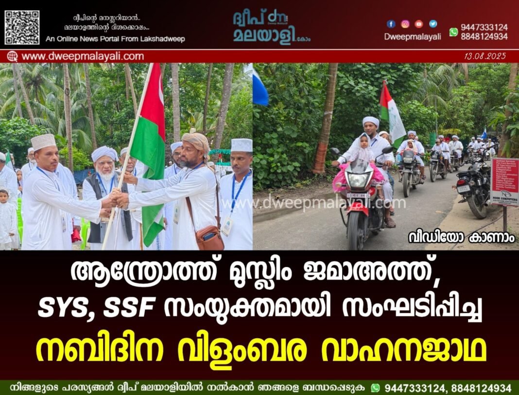 Home Lakshadweep ആന്ത്രോത്ത് മുസ്ലിം ജമാഅത്ത്, SYS, SSF സംയുക്തമായി സംഘടിപ്പിച്ച നബിദിന വിളംബര വാഹനജാഥ. വീഡിയോ കാണാം... LakshadweepReligious ആന്ത്രോത്ത് മുസ്ലിം ജമാഅത്ത്, SYS, SSF സംയുക്തമായി സംഘടിപ്പിച്ച നബിദിന വിളംബര വാഹനജാഥ. വീഡിയോ കാണാം ▶️ By Dweep Malayali - August 13, 2025 0 607 FacebookTwitterPinterestWhatsAppTelegram RELATED ARTICLESMORE FROM AUTHOR സർദാർ പട്ടേലിന്റെ 150-ാം ജന്മവാർഷികം: ‘ഏകതാ മാർച്ച്’, ക്വിസ് ഉൾപ്പെടെ വിവിധ പരിപാടികളുമായി കേന്ദ്ര യുവജന-കായിക മന്ത്രാലയം ലക്ഷദ്വീപ് യുവ എൽജെപി പുതിയ ഭാരവാഹികളെ തിരഞ്ഞെടുത്തു അഭിമാനത്തിളക്കം: കേരള ടീമിനൊപ്പം ദേശീയ വിജയം നേടി ലക്ഷദ്വീപിന്റെ ഫായിസ് മോൻ. LEAVE A REPLY Cancel reply Please enter your comment! Please enter your name here You have entered an incorrect email address! Please enter your email address here Save my name, email, and website in this browser for the next time I comment. Weather Kavaratti overcast clouds enter location 28 ° C 28 ° 28 ° 82 % 7kmh 100 % Tue 28 ° Wed 28 ° Thu 28 ° Fri 27 ° Sat 27 ° Breaking News സർദാർ പട്ടേലിന്റെ 150-ാം ജന്മവാർഷികം: ‘ഏകതാ മാർച്ച്’, ക്വിസ് ഉൾപ്പെടെ വിവിധ പരിപാടികളുമായി കേന്ദ്ര യുവജന-കായിക മന്ത്രാലയം Dweep Malayali - October 13, 2025 0 ലക്ഷദ്വീപ് യുവ എൽജെപി പുതിയ ഭാരവാഹികളെ തിരഞ്ഞെടുത്തു October 13, 2025 അഭിമാനത്തിളക്കം: കേരള ടീമിനൊപ്പം ദേശീയ വിജയം നേടി ലക്ഷദ്വീപിന്റെ ഫായിസ് മോൻ. October 13, 2025 ലക്ഷദ്വീപ് യൂത്ത് കോൺഗ്രസ് സംസ്ഥാന കമ്മിറ്റിക്ക് പുതിയ നേതൃത്വം; അജാസ് അക്ബർ പ്രസിഡന്റ് October 12, 2025 ദേശീയ ജൂനിയർ അത്ലറ്റിക് ചാമ്പ്യൻഷിപ്പ്; സ്വർണ മെഡൽ നേടി ലക്ഷദ്വീപിന്റെ മുബസ്സിന മുഹമ്മദ് October 12, 2025