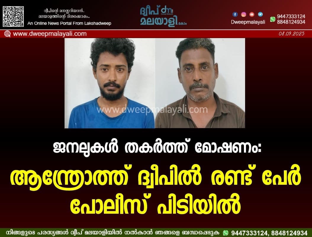 ആന്ത്രോത്ത് ദ്വീപിൽ ഒരു വീട്ടിൽ നടന്ന മോഷണവുമായി ബന്ധപ്പെട്ട് പോലീസ് നടത്തിയ അന്വേഷണത്തിലാണ് പ്രതികൾ കുടുങ്ങിയത്. SI ഖലീൽ സാറിന്റെ നേതൃത്വത്തിലുള്ള പോലീസ് സംഘമാണ് ശാസ്ത്രീയമായ തെളിവുകളുടെ സഹായത്തോടെ പ്രതികളെ പിടികൂടിയത്.