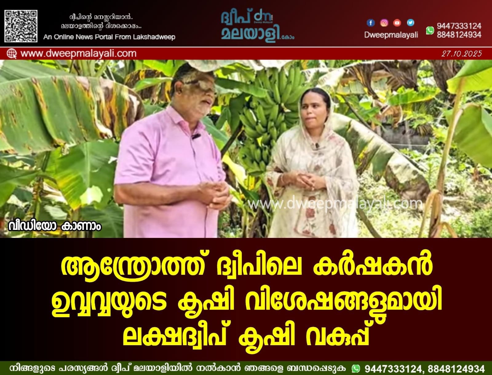 Home Lakshadweep ആന്ത്രോത്ത് ദ്വീപിലെ കർഷകൻ ഉവ്വവ്വയുടെ കൃഷി വിശേഷങ്ങളുമായി ലക്ഷദ്വീപ് കൃഷി വകുപ്പ്. വീഡിയോ കാണാം ▶️ Lakshadweep ആന്ത്രോത്ത് ദ്വീപിലെ കർഷകൻ ഉവ്വവ്വയുടെ കൃഷി വിശേഷങ്ങളുമായി ലക്ഷദ്വീപ് കൃഷി വകുപ്പ്. വീഡിയോ കാണാം ▶️ By Thamji Androth - October 27, 2025 0 574 FacebookTwitterPinterestWhatsAppTelegram Advertisement RELATED ARTICLESMORE FROM AUTHOR ആന്ത്രോത്ത് തഖവിയ്യത്തുൽ മുസ്ലിമീൻ മദ്രസ്സ മാസാന്ത സ്വലാത്ത് മജ്ലിസ് ആരംഭിച്ചു ലക്ഷദ്വീപിൽ വോട്ടർപട്ടിക സൂക്ഷ്മ പുനഃപരിശോധന പ്രഖ്യാപിച്ചു. കവരത്തിയിൽ വൈദ്യുതി പ്രതിസന്ധി: ലോഡ് ഷെഡിംഗ് പ്രാബല്യത്തിൽ; ഉപഭോക്താക്കൾക്ക് 2 മണിക്കൂർ മാത്രം വൈദ്യുതി ലഭിക്കും LEAVE A REPLY Cancel reply Please enter your comment! Please enter your name here You have entered an incorrect email address! Please enter your email address here Save my name, email, and website in this browser for the next time I comment. Weather Kavaratti overcast clouds enter location 27.8 ° C 27.8 ° 27.8 ° 76 % 8.4kmh 100 % Wed 28 ° Thu 28 ° Fri 28 ° Sat 28 ° Sun 27 ° Breaking News ആന്ത്രോത്ത് തഖവിയ്യത്തുൽ മുസ്ലിമീൻ മദ്രസ്സ മാസാന്ത സ്വലാത്ത് മജ്ലിസ് ആരംഭിച്ചു Dweep Malayali - October 28, 2025 0 ലക്ഷദ്വീപിൽ വോട്ടർപട്ടിക സൂക്ഷ്മ പുനഃപരിശോധന പ്രഖ്യാപിച്ചു. October 28, 2025 കവരത്തിയിൽ വൈദ്യുതി പ്രതിസന്ധി: ലോഡ് ഷെഡിംഗ് പ്രാബല്യത്തിൽ; ഉപഭോക്താക്കൾക്ക് 2 മണിക്കൂർ മാത്രം വൈദ്യുതി ലഭിക്കും October 28, 2025 ലക്ഷദ്വീപിന്റെ യശസ്സ് ഉയർത്തിയ കായികതാരം മുബസ്സിനയ്ക്ക് ഉചിതമായ പരിഗണന നൽകണം: എം.പി. ഹംദുള്ളാ സഈദ് October 27, 2025 പുരസ്കാര ജേതാവ് നമീദ് ഇസ്മാഈലിന് ആന്ത്രോത്ത് മർച്ചന്റ്സ് അസോസിയേഷൻ്റെ ആദരം October 27, 2025