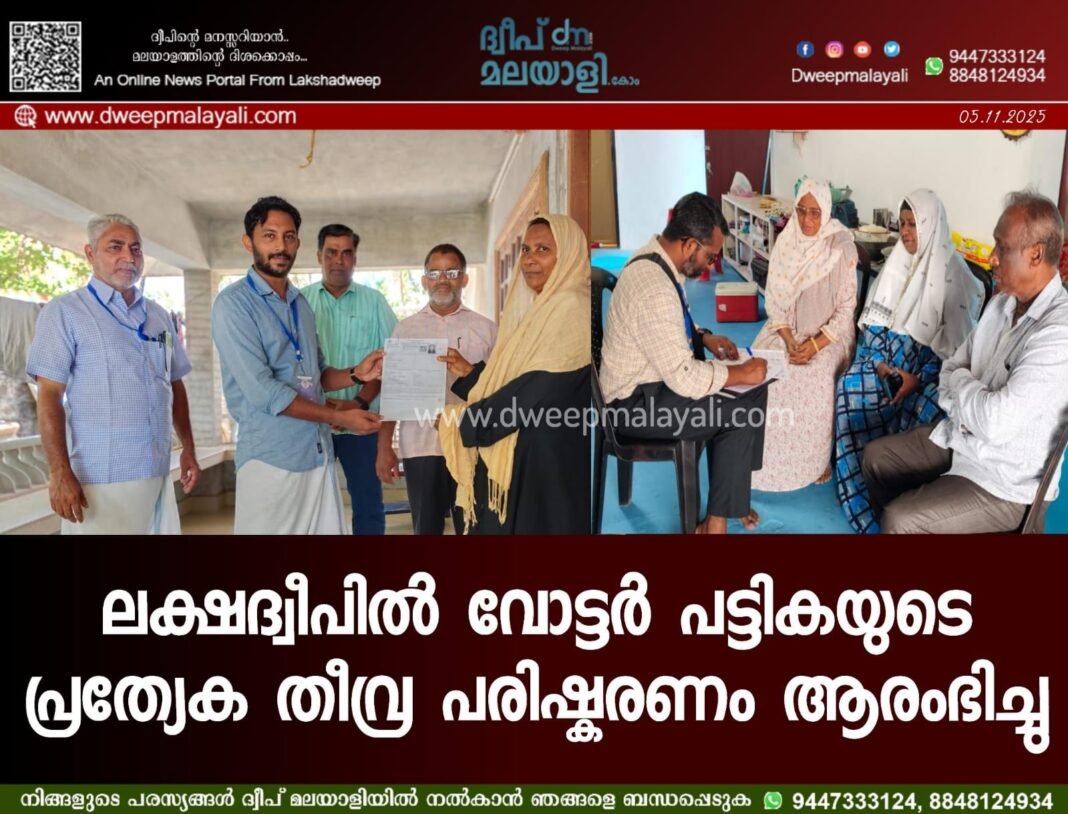 കവരത്തി: 2025 ഒക്ടോബർ 27-ലെ ഇന്ത്യൻ തിരഞ്ഞെടുപ്പ് കമ്മീഷന്റെ ഉത്തരവിൻ പ്രകാരം ലക്ഷദ്വീപിൽ വോട്ടർ പട്ടികയുടെ പ്രത്യേക തീവ്ര പരിഷ്കരണം (Special Intensive Revision – SIR) ആരംഭിച്ചു. ഈ നിർണായക പ്രക്രിയയുടെ ഭാഗമായി, 57,813 വോട്ടർമാർക്കായി ആകെ 1,15,626 എനുമെറേഷൻ ഫോമുകളാണ് അച്ചടിച്ച് 10 ദ്വീപുകളിലായി വിതരണം ചെയ്തത്.