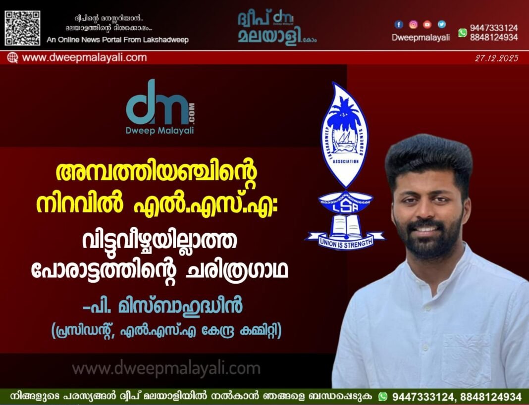 അരാഷ്ട്രീയതയുടെ നീരാളിപ്പിടുത്തത്തിൽ നിന്ന് മോചിതരായി, നേരിന്റെ രാഷ്ട്രീയം പറയുന്ന ഒരു പുതിയ തലമുറയെ വാർത്തെടുക്കുക എന്നതാണ് LSA-യുടെ ലക്ഷ്യം. തടവറകളെ പോലും ഭയക്കാത്ത പോരാട്ടവീര്യവുമായി 55-ാം വയസ്സിലേക്ക് ചുവടുവെക്കുമ്പോൾ, ഈ പ്രസ്ഥാനം ലക്ഷദ്വീപിന്റെ വിപ്ലവ സ്വപ്നങ്ങൾക്ക് കാവലാളായി തുടരും.