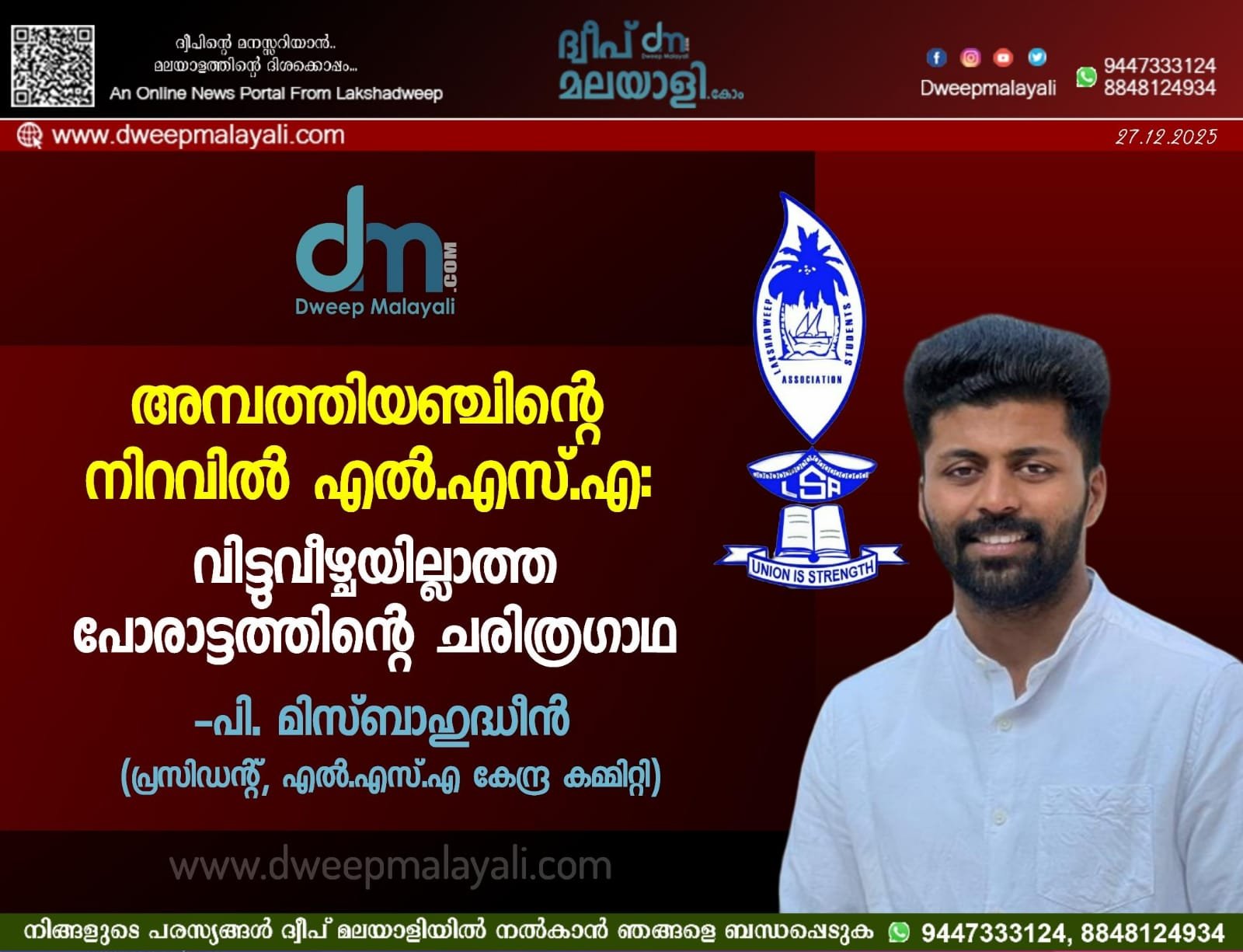 ലക്ഷദ്വീപിന്റെ സാമൂഹിക-രാഷ്ട്രീയ ചരിത്രത്തിൽ വിദ്യാർത്ഥി പ്രസ്ഥാനങ്ങൾക്കുള്ള സ്ഥാനം സമാനതകളില്ലാത്തതാണ്. അധികാര വർഗ്ഗത്തിന്റെ അവഗണനകൾക്കും ചൂഷണങ്ങൾക്കുമെതിരെ ശബ്ദമുയർത്താൻ ഒരു കരുത്തുറ്റ സംഘടന വേണമെന്ന തിരിച്ചറിവിൽ നിന്നാണ് 1970 ഡിസംബർ 27-ന് ലക്ഷദ്വീപ് സ്റ്റുഡന്റ്സ് അസോസിയേഷൻ (LSA) പിറവിയെടുക്കുന്നത്.