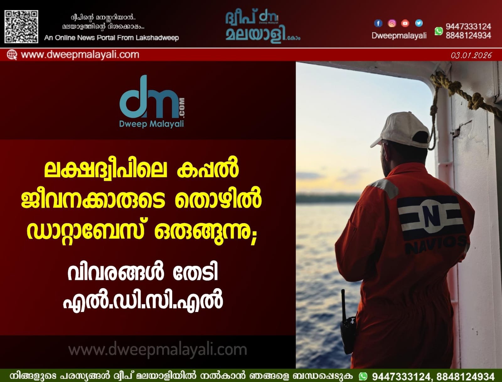 കൊച്ചി: ലക്ഷദ്വീപ് ഭരണകൂടത്തിന് കീഴിലുള്ള ലക്ഷദ്വീപ് വികസന കോർപ്പറേഷൻ ലിമിറ്റഡ് (LDCL), ലക്ഷദ്വീപിലെ യോഗ്യതയുള്ള കപ്പൽ ജീവനക്കാരുടെ ഒരു സമഗ്രമായ തൊഴിൽ ഡാറ്റാബേസ് തയ്യാറാക്കുന്നു. ലക്ഷദ്വീപിലെ സീമെൻമാരുടെ തൊഴിൽ സാധ്യതകൾ വർധിപ്പിക്കുക എന്ന ലക്ഷ്യത്തോടെയാണ് ഈ പദ്ധതി നടപ്പിലാക്കുന്നത്. തയ്യാറാക്കുന്ന ഡാറ്റാബേസ് ഇന്ത്യയിലെയും വിദേശത്തെയും പ്രമുഖ ഷിപ്പിംഗ് കമ്പനികൾക്കും മാരിടൈം സംഘടനകൾക്കും ആവശ്യാനുസരണം കൈമാറുന്നതാണ്. ഇതിലൂടെ ദ്വീപുനിവാസികൾക്ക് കപ്പൽ മേഖലയിൽ കൂടുതൽ മികച്ച തൊഴിലവസരങ്ങൾ ലഭ്യമാക്കുകയാണ് അധികൃതർ ലക്ഷ്യമിടുന്നത്.