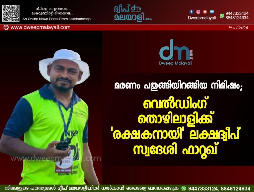മുക്കം: നന്മയുടെയും കരുണയുടെയും ഉദാത്തമായ മാതൃകയായി മാറിയിരിക്കുകയാണ് കോഴിക്കോട് മുക്കം നെല്ലിക്കാപ്പറമ്പിൽ ജോലി ചെയ്യുന്ന ലക്ഷദ്വീപ് സ്വദേശി ഫാറൂഖ് എന്ന സയ്യിദ് മുഹമ്മദ് ജലാലുദ്ദീൻ ബുഖാരി. കെട്ടിടത്തിന് മുകളിൽ നിന്നും അബദ്ധത്തിൽ താഴേക്ക് വീണ വെൽഡിംഗ് തൊഴിലാളിക്ക് തന്റെ സമയോചിതമായ ഇടപെടലിലൂടെ ഫാറൂഖ് പുതുജീവൻ നൽകി. അപകടം നടന്ന ഉടനെ ഒട്ടും വൈകാതെ തന്നെ രക്ഷാപ്രവർത്തനത്തിന് മുന്നിട്ടിറങ്ങിയ ഇദ്ദേഹത്തിന്റെ ധീരമായ പ്രവർത്തനം വലിയൊരു ദുരന്തം ഒഴിവാക്കാൻ സഹായിച്ചു. ലക്ഷദ്വീപിലെ ആന്ത്രോത്ത് ദ്വീപ് പുതിയപുര വീട് സ്വദേശിയായ ഫാറൂഖ് നിലവിൽ നെല്ലിക്കാപ്പറമ്പിൽ ഡ്രൈവറായി ജോലി ചെയ്തു വരികയാണ്.