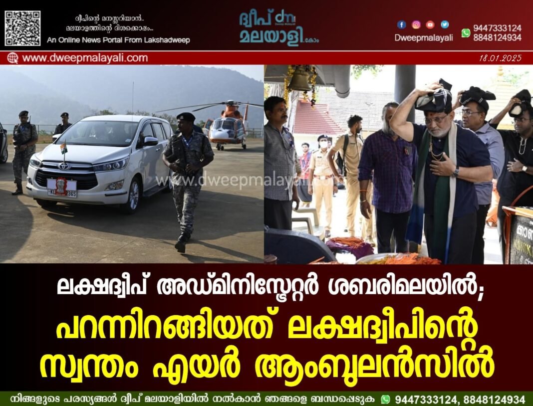 ശബരിമല: ലക്ഷദ്വീപ് അഡ്മിനിസ്ട്രേറ്റർ പ്രഫുൽ ഘോഡാ പട്ടേൽ ശബരിമലയിൽ ദർശനം നടത്തി. ശനിയാഴ്ച രാവിലെ കൊച്ചിയിൽ നിന്നും ഹെലികോപ്റ്റർ മാർഗ്ഗം നിലയ്ക്കലിൽ എത്തിയ അദ്ദേഹം പമ്പ ഗണപതി ക്ഷേത്രത്തിൽ ആചാരപരമായ ചടങ്ങുകൾ പൂർത്തിയാക്കിയ ശേഷമാണ് സന്നിധാനത്തേക്ക് മലകയറിയത്. ലക്ഷദ്വീപ് കളക്ടർ ഗിരിശങ്കർ, ദാമൻ കളക്ടർ സൗരഭ് മിശ്ര, അഡ്മിനിസ്ട്രേറ്ററുടെ സുഹൃത്ത് ഹർഷദ് കുമാർ പട്ടേൽ എന്നിവരും അദ്ദേഹത്തോടൊപ്പം ദർശനത്തിനായി എത്തിയിരുന്നു. തിരുവിതാംകൂർ ദേവസ്വം ബോർഡ് അധികൃതർ ഇവർക്ക് ആവശ്യമായ സ്വീകരണങ്ങൾ ഒരുക്കിയിരുന്നു. എന്നാൽ അഡ്മിനിസ്ട്രേറ്ററുടെ ഈ സന്ദർശനം ഇപ്പോൾ വലിയൊരു വിവാദത്തിന് വഴിതുറന്നിരിക്കുകയാണ്.