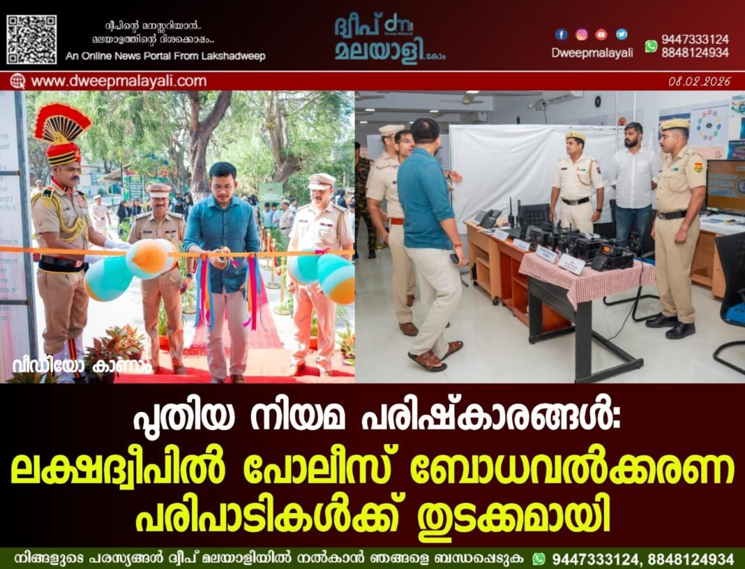 ബ്യുറോ ഓഫ് പോലീസ് റിസർച്ച് ആൻഡ് ഡവലപ്മെന്റ് (BPRD) നൽകിയ നിർദേശങ്ങൾക്കനുസൃതമായാണ് ഈ പ്രദർശനം ഒരുക്കിയിരിക്കുന്നത്. പുതിയ നിയമങ്ങളിലെ മാറ്റങ്ങൾക്കൊപ്പം, ആധുനിക കുറ്റാന്വേഷണ രംഗത്ത് ഉപയോഗിക്കുന്ന ഫോറൻസിക് കിറ്റുകൾ, ക്രൈം ആൻഡ് ക്രിമിനൽ ട്രാക്കിംഗ് നെറ്റ്വർക്ക് സിസ്റ്റം (CCTNS), അടിയന്തര പ്രതികരണ സംവിധാനങ്ങൾ (Emergency Response System), പോലീസ് സ്റ്റേഷനുകളുടെ പ്രവർത്തന രീതികൾ എന്നിവയും പൊതുജനങ്ങൾക്ക് ഇവിടെ നേരിട്ട് മനസ്സിലാക്കാം. രാജ്യത്തിന്റെ പുതിയ നിയമസംഹിതയെക്കുറിച്ച് ജനങ്ങളെ സമഗ്രമായി ബോധവൽക്കരിക്കുക എന്ന ലക്ഷ്യത്തോടെ കവരത്തിയിൽ ആരംഭിച്ച ഈ പരിപാടി, വരും ദിവസങ്ങളിൽ മറ്റ് ദ്വീപുകളിലേക്കും വ്യാപിപ്പിക്കുമെന്ന് ലക്ഷദ്വീപ് പോലീസ് അധികൃതർ അറിയിച്ചു.