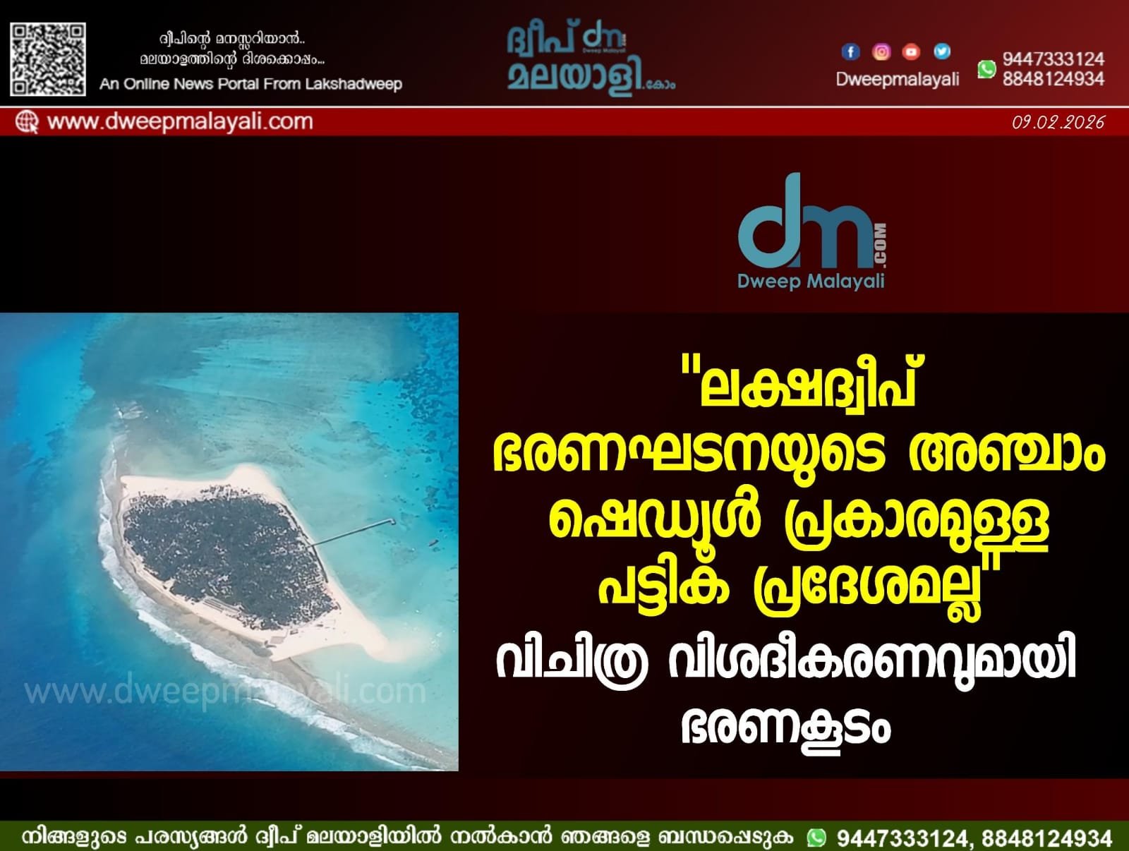 കവരത്തി: ബിത്ര ദ്വീപ് ഏറ്റെടുക്കുന്നതുമായി ബന്ധപ്പെട്ട വിവാദങ്ങളിൽ ലക്ഷദ്വീപ് ഭരണകൂടം വിചിത്ര വിശദീകരണവുമായി രംഗത്തെത്തിയിരിക്കുന്നു. ലക്ഷദ്വീപ് ഒരു ‘പട്ടിക പ്രദേശം’ (Scheduled Area) ആണെന്ന വാദം തള്ളിക്കൊണ്ടാണ് ഭരണകൂടം തങ്ങളുടെ നിലപാട് വ്യക്തമാക്കിയിരിക്കുന്നത്.