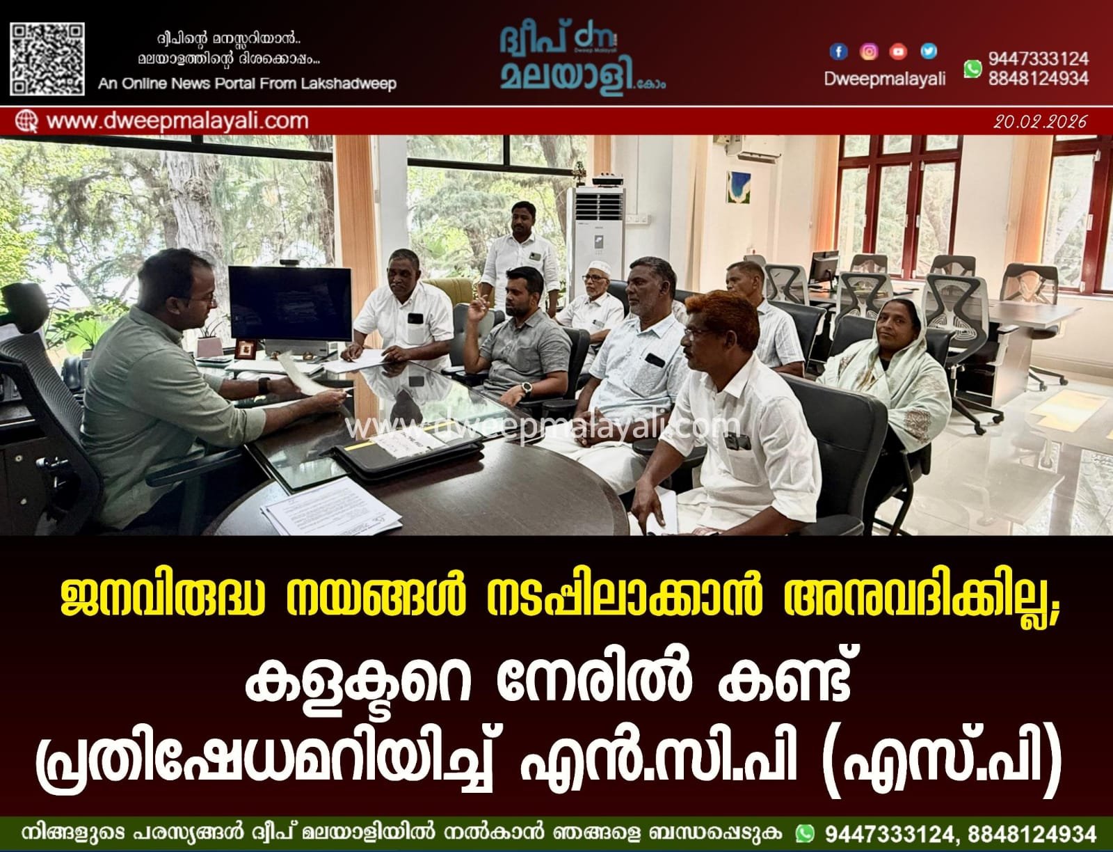 അതോടൊപ്പം, ദ്വീപിൽ നടപ്പിലാക്കാൻ ഉദ്ദേശിക്കുന്ന ‘നോ വെഹിക്കിൾ ഡേ’ എന്ന ആശയത്തോടും പാർട്ടി കടുത്ത വിയോജിപ്പ് രേഖപ്പെടുത്തി. വിഷയവുമായി ബന്ധപ്പെട്ട് ജില്ലാ കളക്ടർ ഗിരി ശങ്കർ IAS-നെ നേരിൽ കണ്ട പാർട്ടി നേതൃത്വം, ഈ പരിഷ്കാരം ജനങ്ങൾക്ക് വലിയ ബുദ്ധിമുട്ടുകൾ സൃഷ്ടിക്കുമെന്നും ഇത് നടപ്പിലാക്കാൻ അനുവദിക്കില്ലെന്നും വ്യക്തമാക്കി. തുടർന്ന് നടന്ന സർവ്വകക്ഷി യോഗത്തിലും (All Party Meeting) എൻ.സി.പി പ്രതിനിധികൾ ഇതേ നിലപാട് ആവർത്തിച്ചു. ജനങ്ങൾ നേരിടാൻ പോകുന്ന പ്രായോഗിക ബുദ്ധിമുട്ടുകൾ അക്കമിട്ടു നിരത്തിയ പാർട്ടി നേതൃത്വം, ഈ നീക്കത്തിൽ നിന്ന് ഭരണകൂടം എത്രയും പെട്ടെന്ന് പിന്തിരിയണമെന്ന് ശക്തമായ ഭാഷയിൽ ആവശ്യപ്പെട്ടു.
