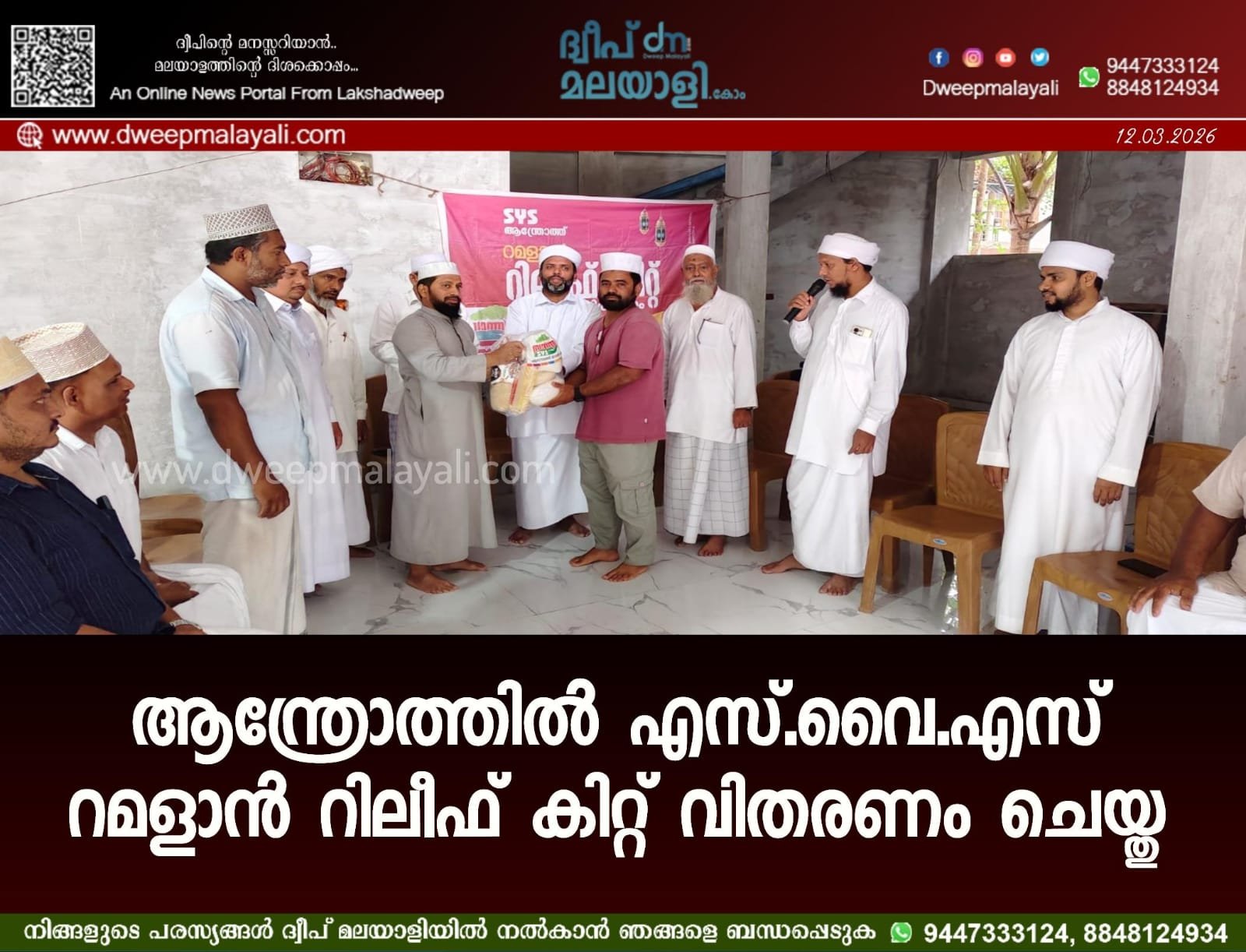 ആന്ത്രോത്ത്: നിർധനരായ കുടുംബങ്ങൾക്ക് കൈത്താങ്ങായി എസ്.വൈ.എസ് (SYS) ആന്ത്രോത്ത് സോൺ സാന്ത്വനം വിംഗ് സംഘടിപ്പിച്ച റമളാൻ റിലീഫ് കിറ്റ് വിതരണം നടന്നു. മാർച്ച് 11 ബുധനാഴ്ച ഉച്ചയ്ക്ക് 2 മണിയോടെയാണ് വിതരണോദ്ഘാടനം നടന്നത്. ആന്ത്രോത്ത് ദ്വീപിലെ വിവിധ ഭാഗങ്ങളിൽ നിന്നുള്ള അർഹരായ 250 കുടുംബങ്ങൾക്കാണ് ഇത്തവണ റമളാൻ കിറ്റുകൾ ലഭ്യമാക്കിയത്.