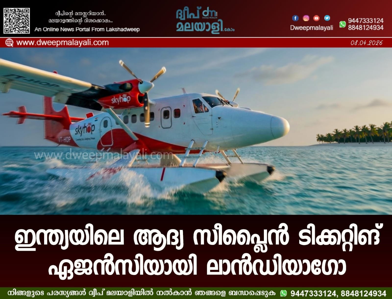 അഗത്തി: ലക്ഷദ്വീപിന്റെ വിനോദസഞ്ചാര മേഖലയിൽ വിപ്ലവകരമായ മാറ്റങ്ങൾക്കിടയാക്കുന്ന സീപ്ലൈൻ സർവീസുകൾക്ക് തുടക്കമാകുന്നു. കേന്ദ്ര സർക്കാരിന്റെ ഉഡാൻ (UDAN) പദ്ധതിയുടെ ഭാഗമായി ആരംഭിക്കുന്ന ഈ പദ്ധതിയിൽ, ഇന്ത്യയിലെ ആദ്യത്തെ സീപ്ലൈൻ ടിക്കറ്റിങ് ഏജൻസിയായി ലക്ഷദ്വീപിൽ നിന്നുള്ള ലാൻഡിയാഗോ പ്രൈവറ്റ് ലിമിറ്റഡ് (Landiago Pvt Ltd) അംഗീകാരം നേടി. ഇതോടെ സീപ്ലൈൻ ടിക്കറ്റുകൾ ഇനി ലാൻഡിയാഗോ വഴി യാത്രക്കാർക്ക് എളുപ്പത്തിൽ ബുക്ക് ചെയ്യാവുന്നതാണ്.